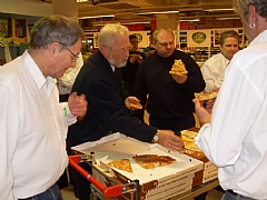 Noko uvanleg å stille i uniform for å telja leverpostei og andre varer på Kiwi. I dag var unnataket då me skulle spela i 1. mai toget midt på dagen. Kl 12 var alle omkledde og klar til speling for så å fortsetja på teljing og pizzaeting etterpå :)
